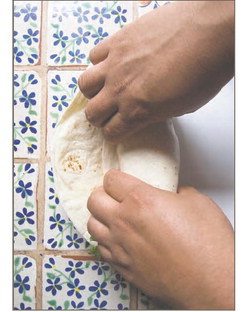 “You have to warm it up before,” said Vigil. “Then, you put cheese, onion, beans, and cooked chicken, beef or shrimp inside it. Roll it up nicely and add a little bit of whatever chile you want to use, and cheese on top. Put it on the salamander broiler briefly and let the cheese melt.
